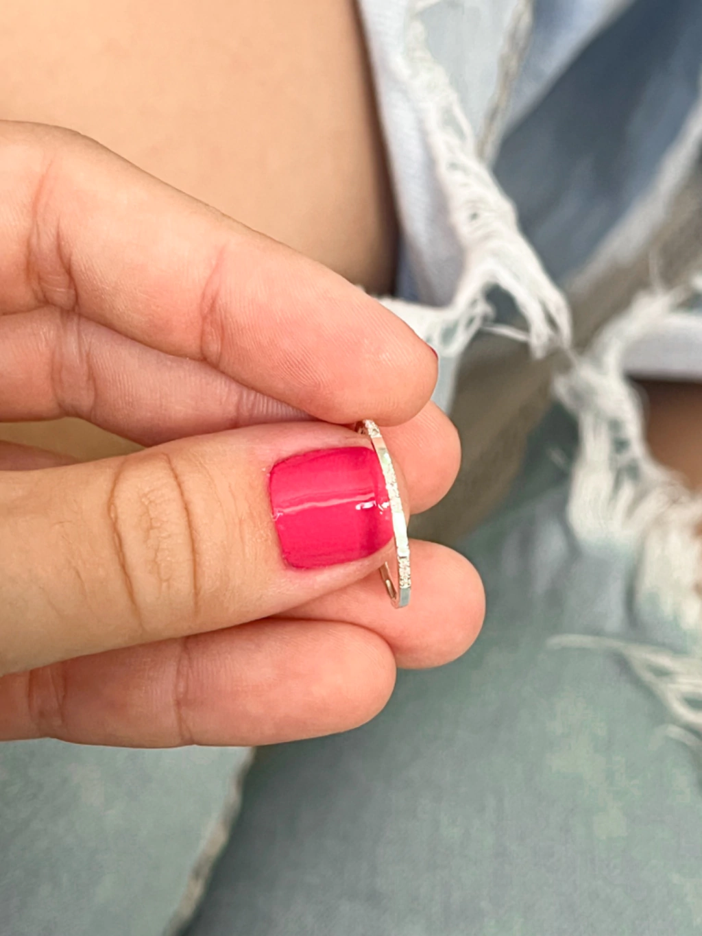 Anel meia aliança cravejada intercalada em prata por R$66.