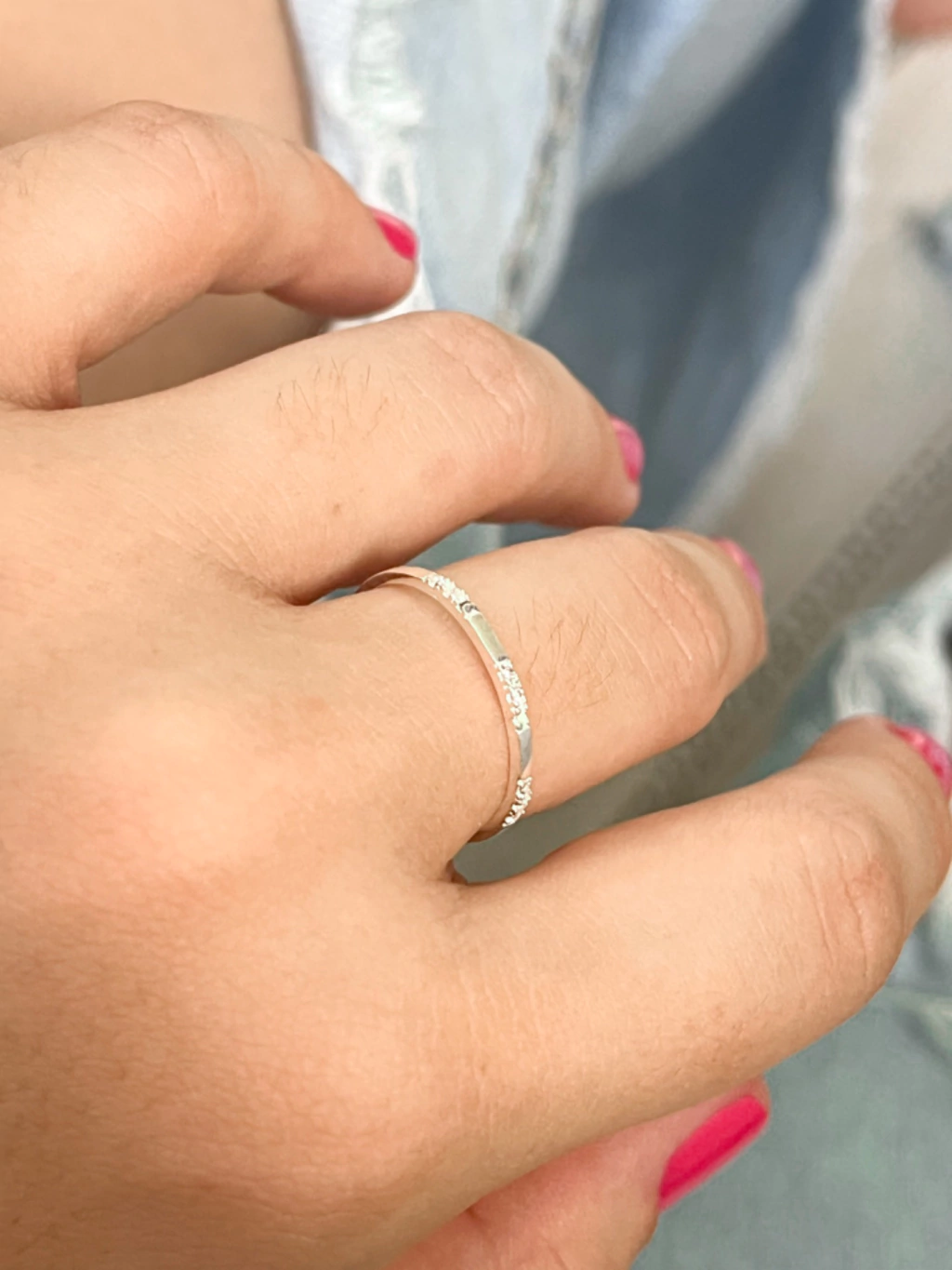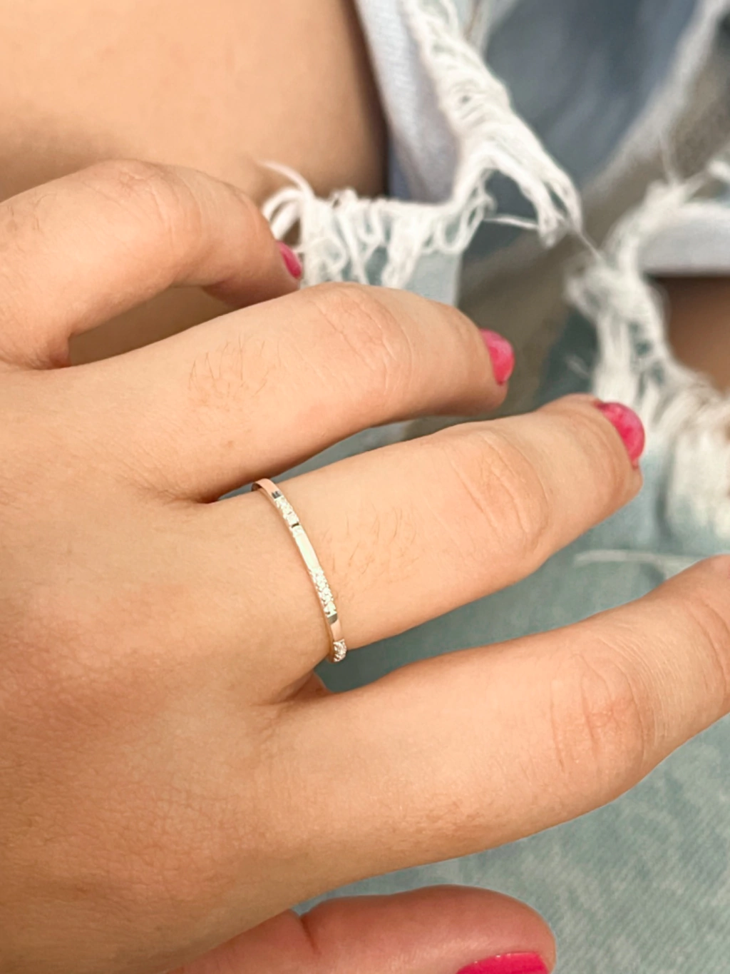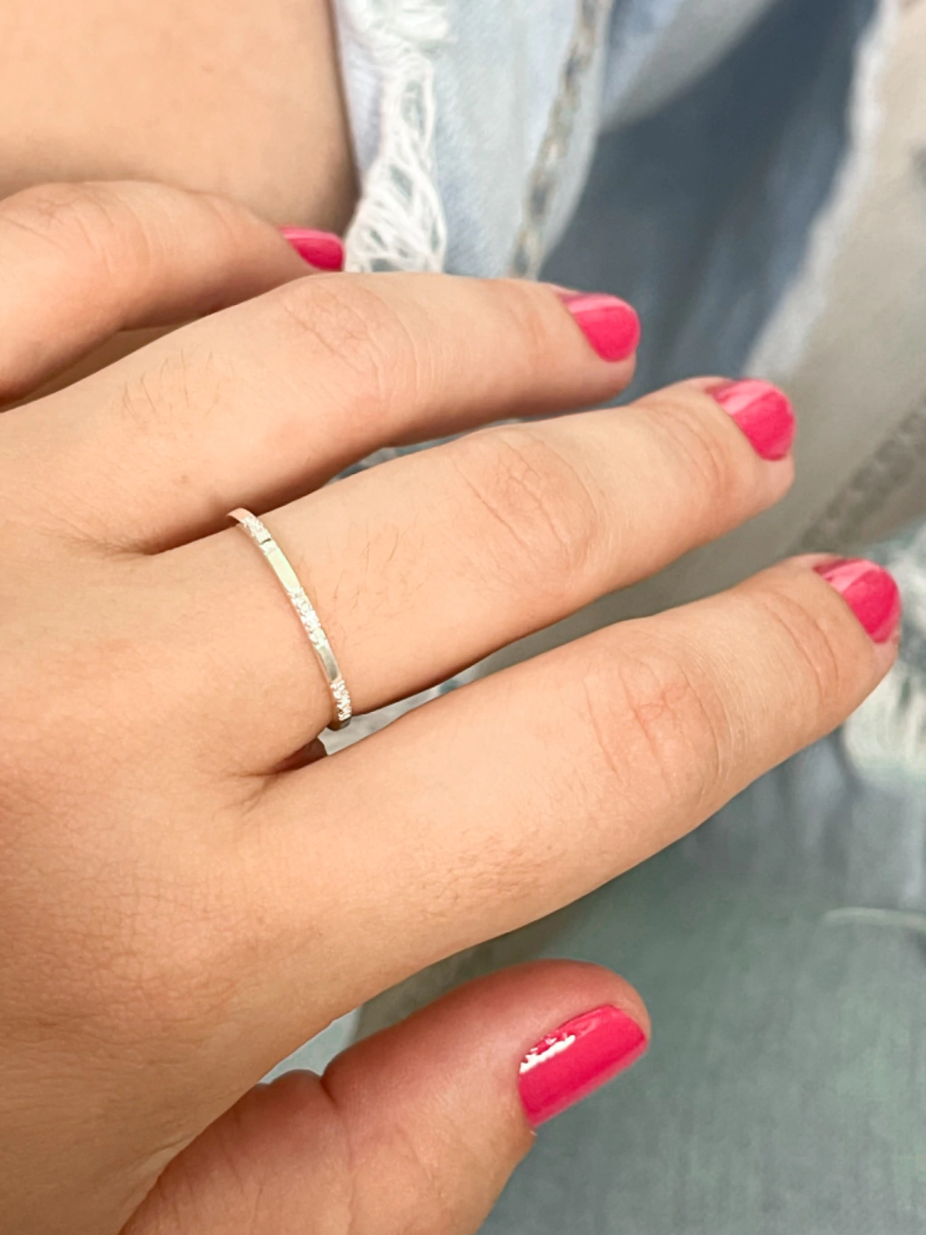 Anel meia aliança cravejada intercalada em prata