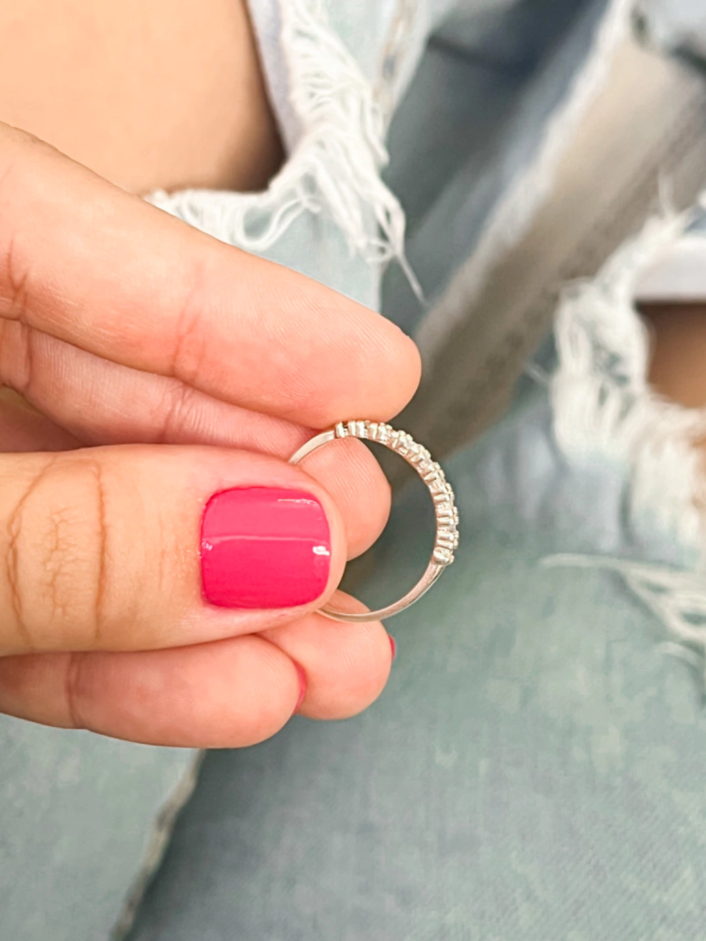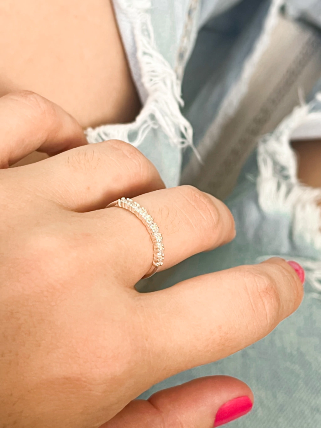 Anel meia aliança zirconias grandes em prata por R$88.