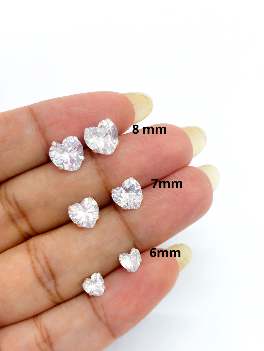 Brinco Coração Zircônia 8mm em prata por R$58.