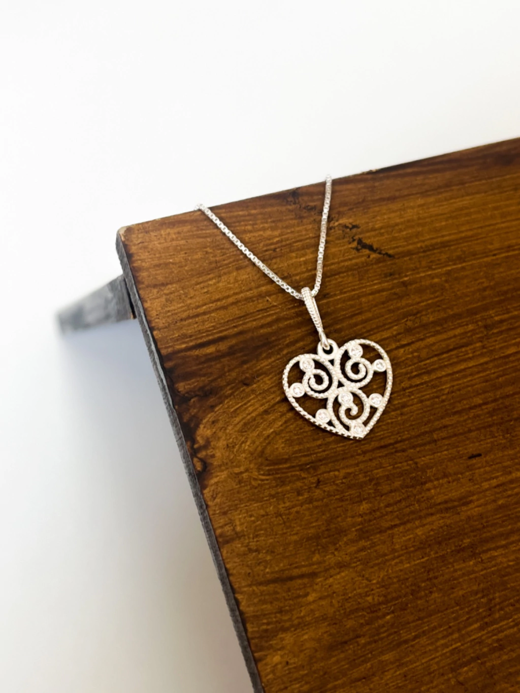 Pingente coração com zircônias em prata